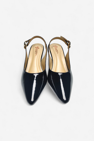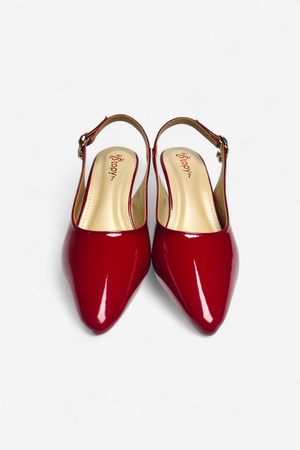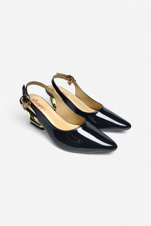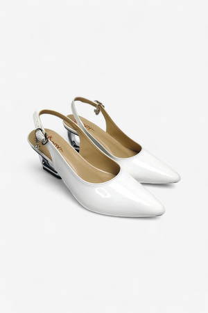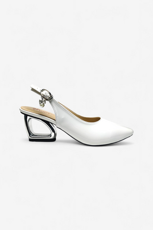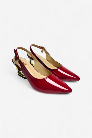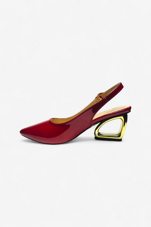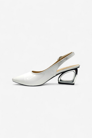 This slingback court shoe redefines footwear with its striking, sculptural block heel—a hollow, architectural masterpiece that serves as a confident, modern foundation. Crafted in high-gloss patent material, the sharp, pointed-toe silhouette is perfectly complemented by the sleek slingback strap and mirrored heel finish. It is the definitive shoe for the woman who demands a fashion-forward, statement-making profile, ensuring every professional or social entrance is unforgettable.