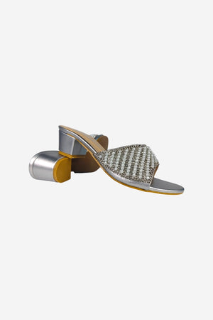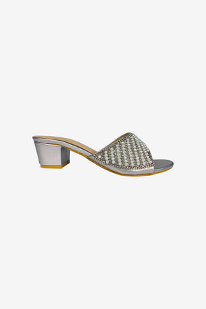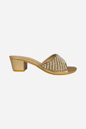 • Look: A glamorous, open-toe slide set on a comfortable low block heel. The wide strap is densely covered in alternating rows of classic white pearls and sparkling beads, creating a rich, classic, and textured sparkle.