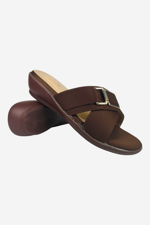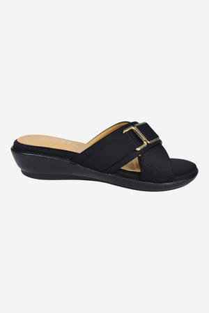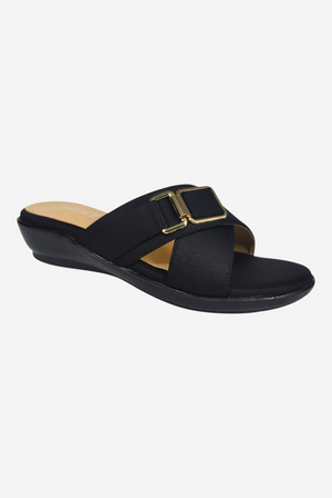 Comfort: The subtle wedge heel provides gentle elevation and stable full-foot support, making it comfortable for all-day wear. The wide, criss-cross strap design offers a secure hold and the slide allows for quick slip-on convenience.