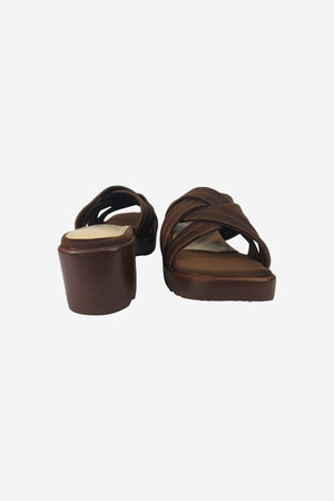 • Look: A chic, open-toe slide featuring wide, criss-cross straps and a bold, chunky lug sole block heel, perfect for balancing trendy style with everyday comfort.