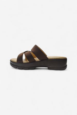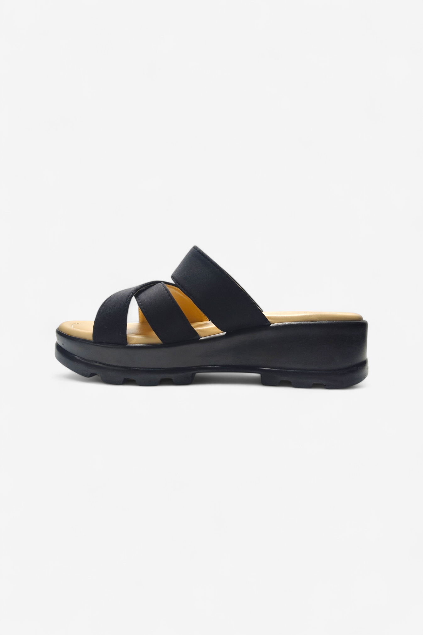 Material: Strong textile strap; lightweight platform wedge; lug-style rubber base.