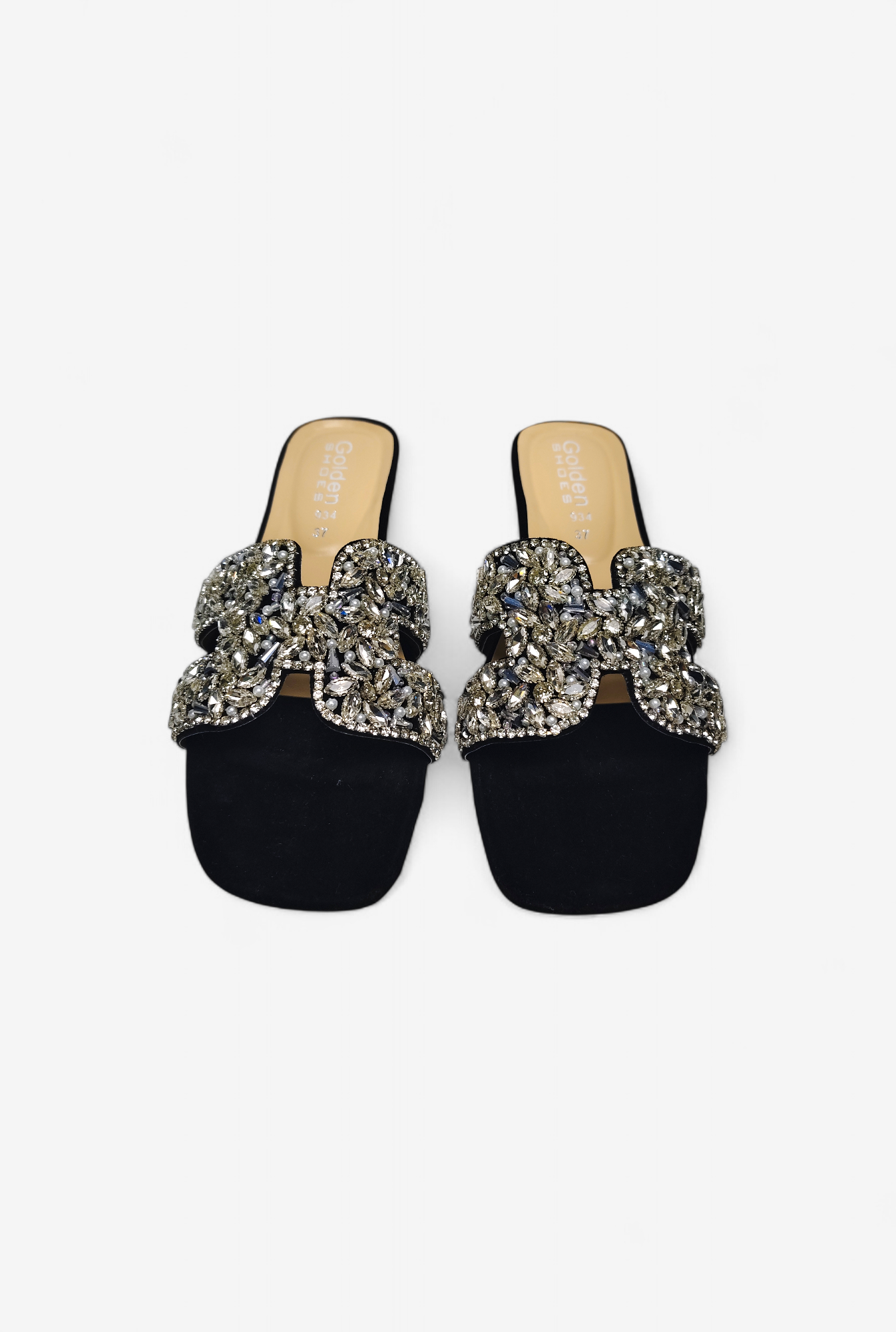 Material: High-quality synthetic upper with a dense rhinestone embellishment.