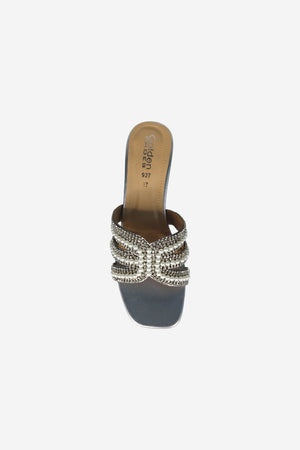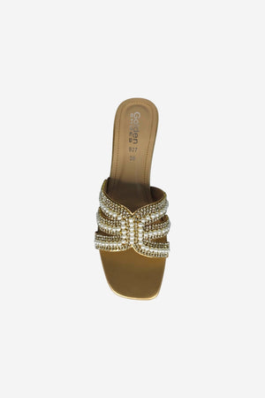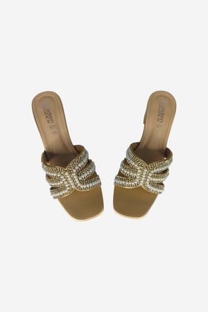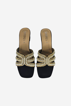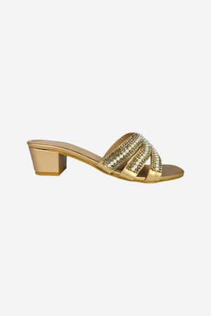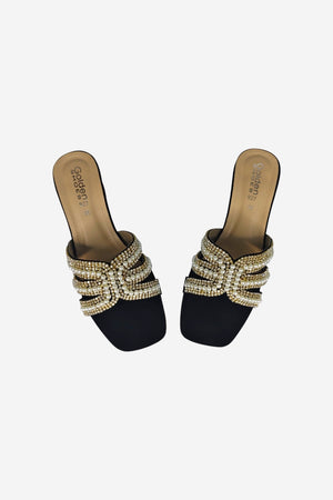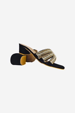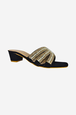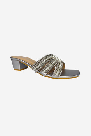 The Formal Block Heel K927 features a triple-strap design joined gracefully at the center, each strap adorned with white beads and sparkling silver stones for a luxurious touch. Set on a small, broad block heel, it offers both elegance and stability, making it perfect for long wear without compromising style. Available in black, golden, and silver to suit any formal occasion.