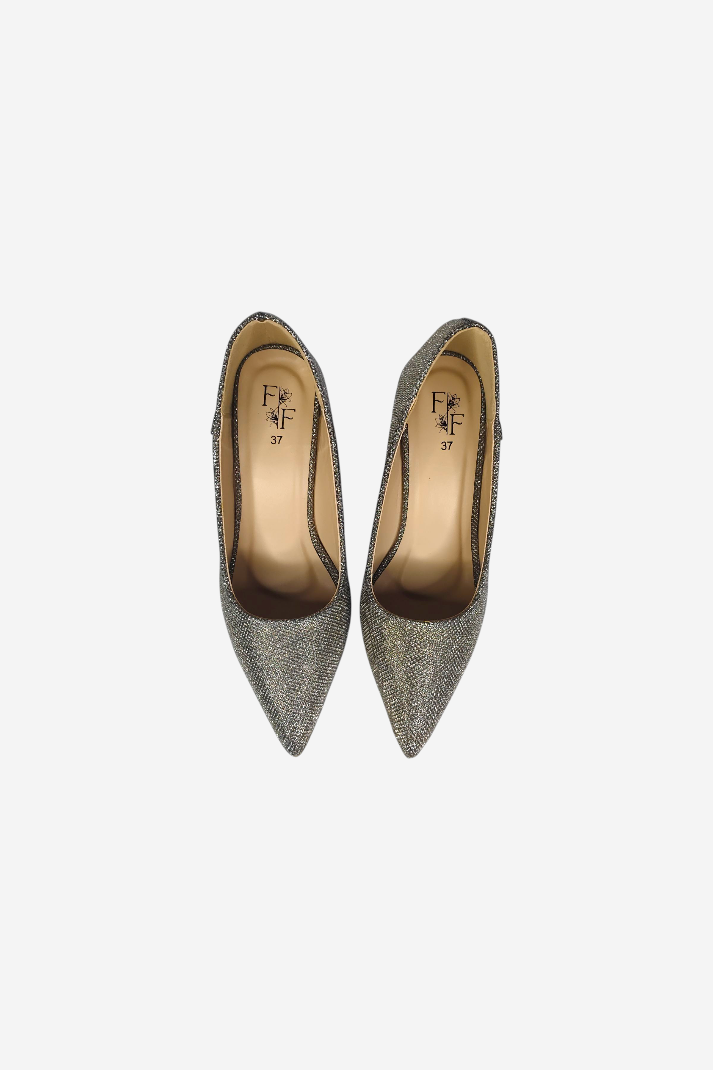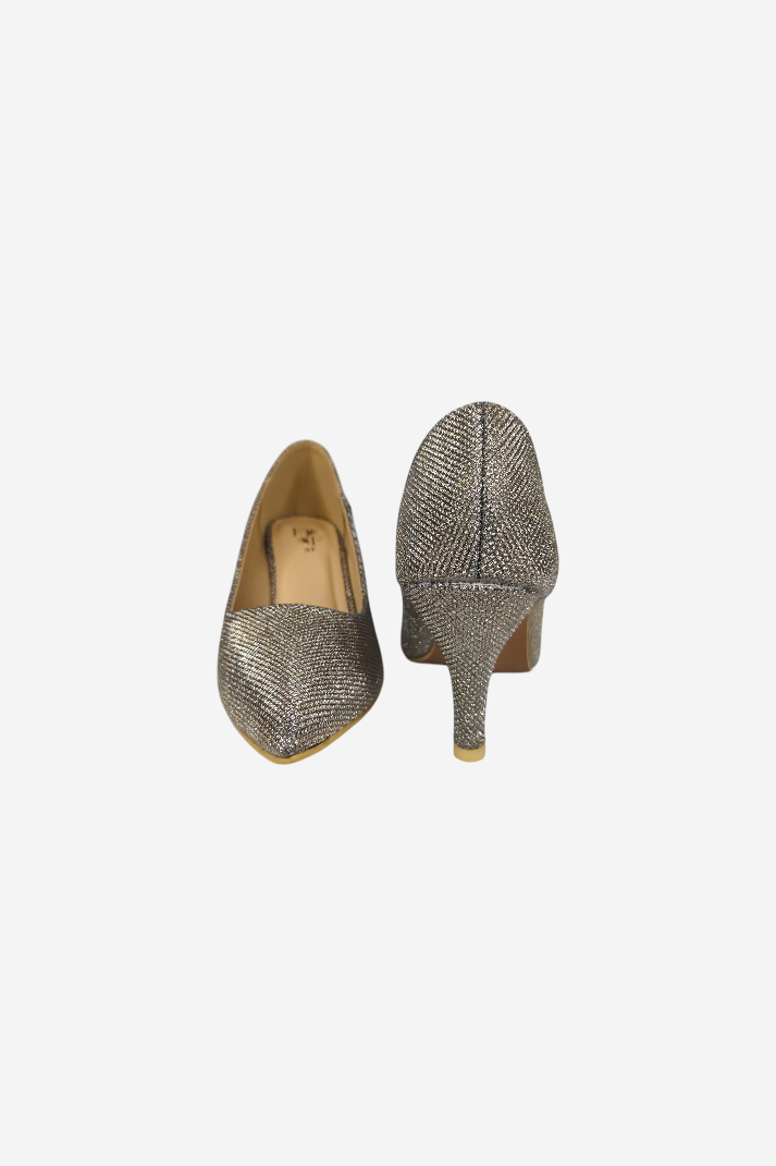 The K1015 Formal Court Shoes are designed for women who love elegance with a touch of glamour. Featuring a sleek pointed toe and a glitter-finish surface, these heels bring instant sophistication to any outfit. The small pencil heel adds height while keeping comfort in mind, making them a reliable choice for long hours.