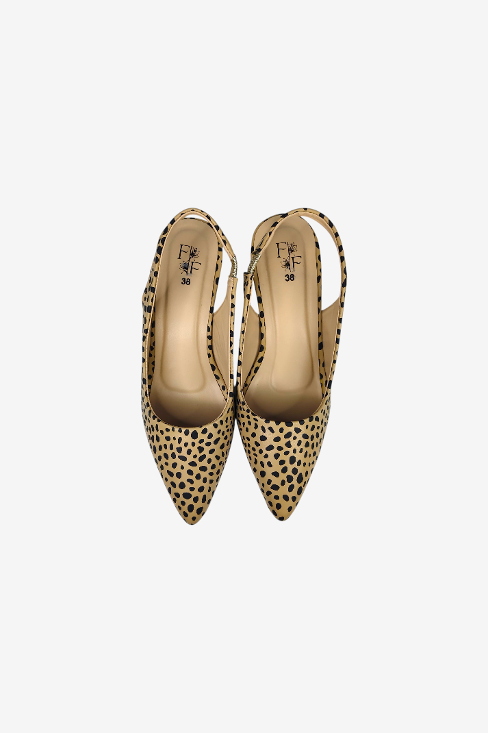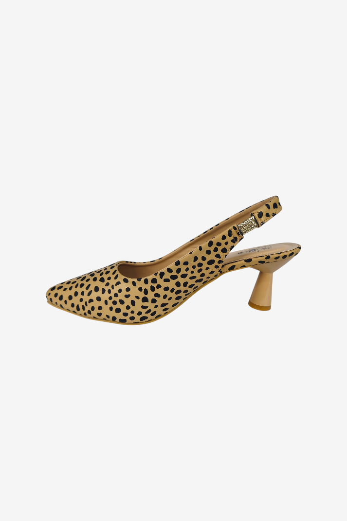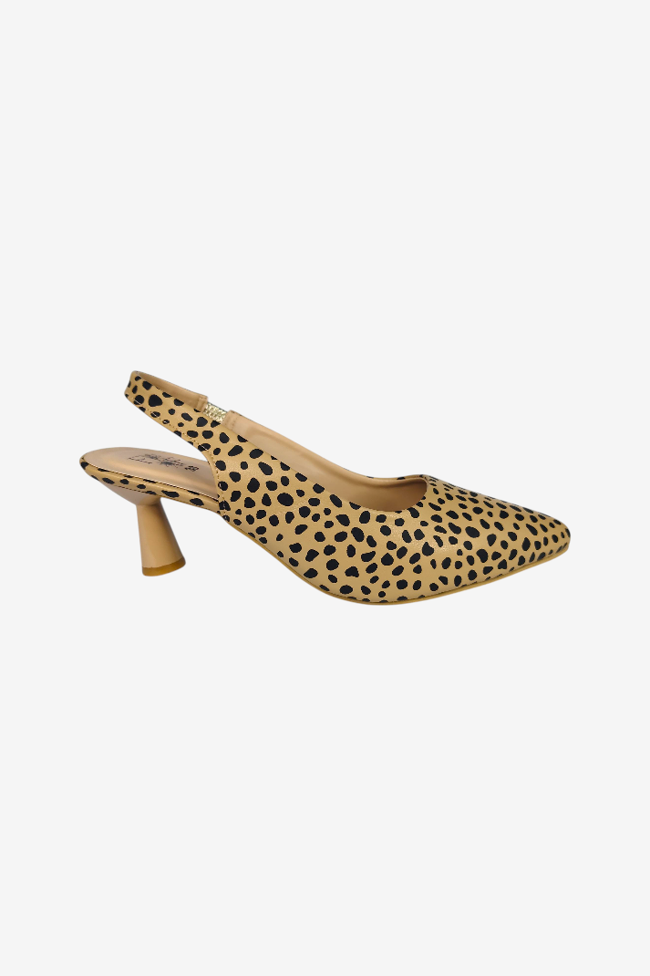 Turn heads with the K1025 Formal Court Shoes, where playful prints meet classic design. Featuring a sleek pointed toe and a stylish slingback strap, these shoes are perfect for women who love to mix elegance with a touch of wild energy.