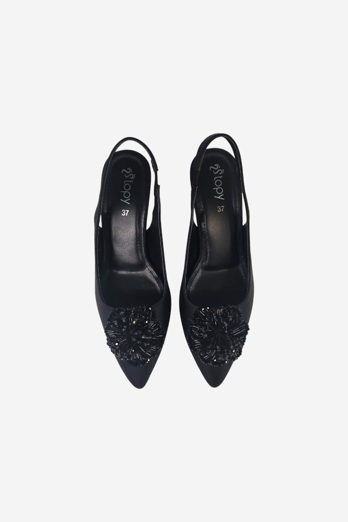Formal Court Shoes K21013 – Elegant Flower Buckle with Slingback Design