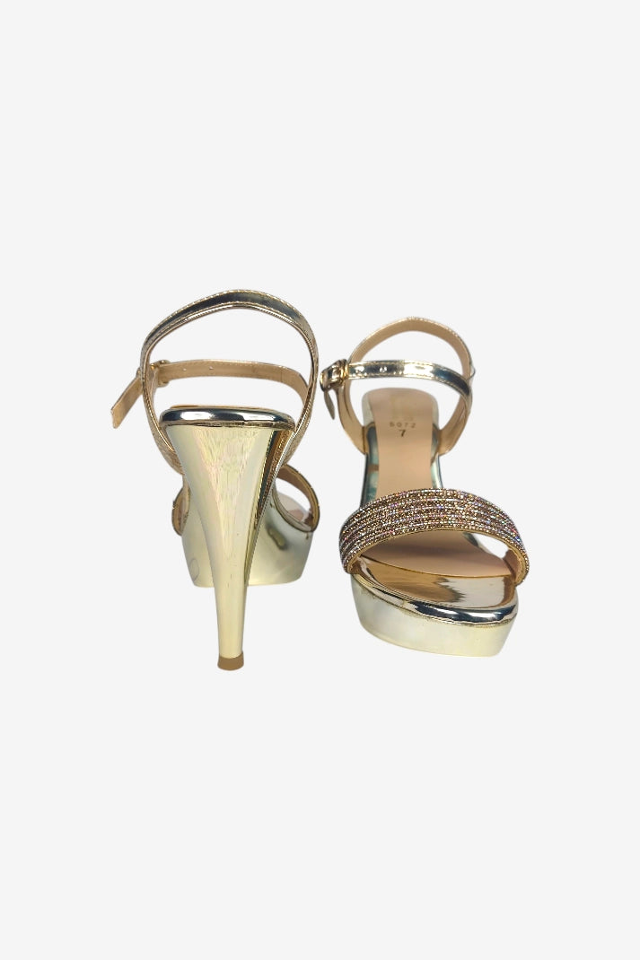 The K5072 Formal Heel is designed with a bold and elegant style, featuring a wide strap on the front fully covered with shiny stones that give it a rich and fancy appearance. Perfect for parties, weddings, and formal occasions, these heels bring both glamour and sophistication to your outfit.
