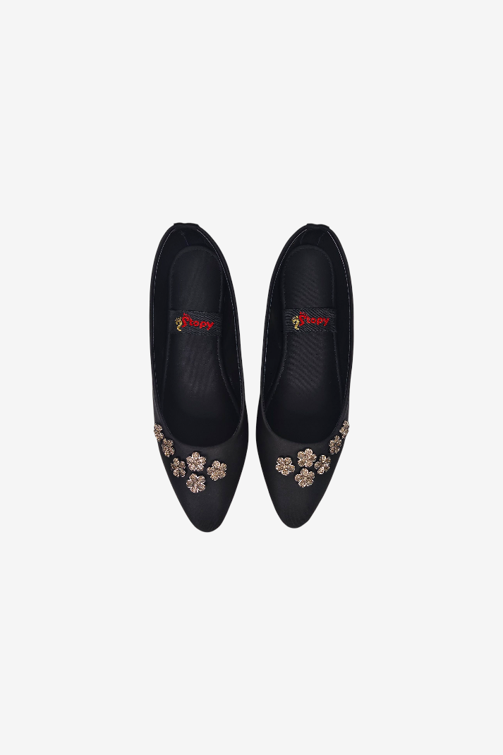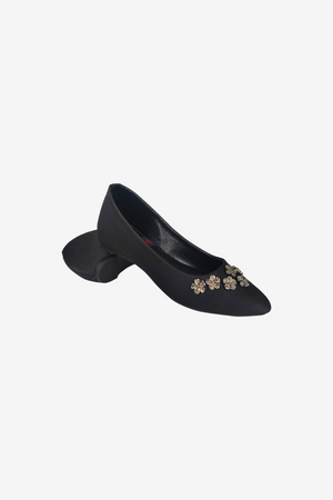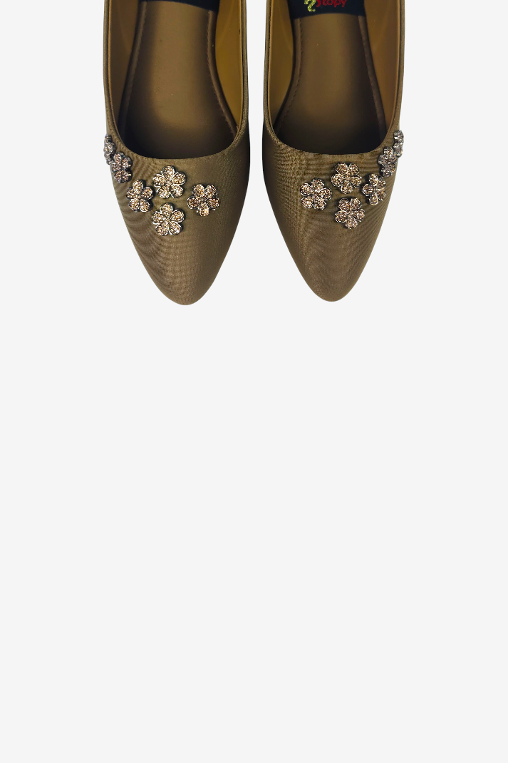 Elevate your look with the K1040 Formal Pumps, designed for women who love a mix of style, sparkle, and comfort. Featuring hand-embellished golden floral motifs on the toe, these pumps bring an elegant shine to every outfit — from office wear to festive evenings.