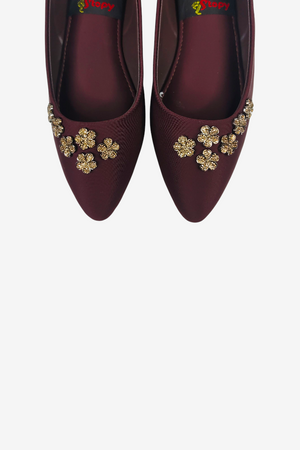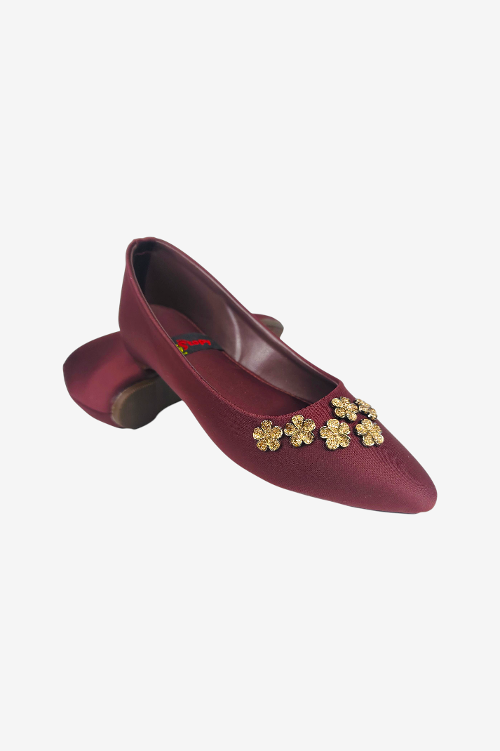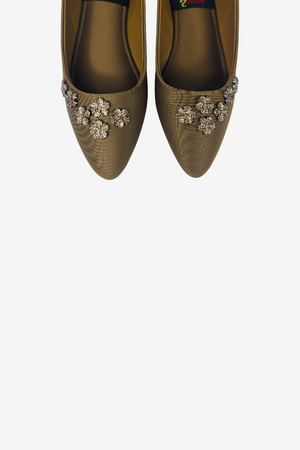 Elevate your look with the K1040 Formal Pumps, designed for women who love a mix of style, sparkle, and comfort. Featuring hand-embellished golden floral motifs on the toe, these pumps bring an elegant shine to every outfit — from office wear to festive evenings.