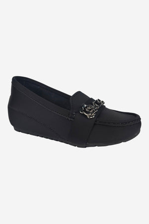The K201 Formal Shoes are designed with a premium wedge sole, offering long-lasting comfort and support for all-day wear. On the front, a stylish metallic flower chain buckle is mounted, giving the shoes a touch of elegance and luxury.