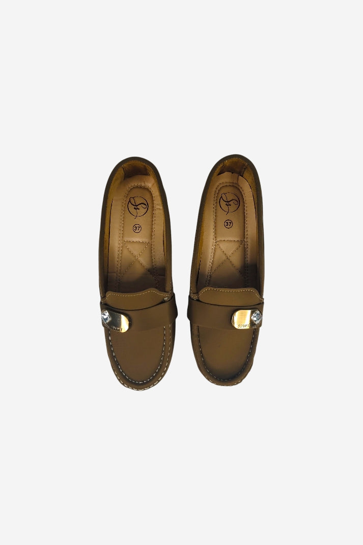 The K202 Formal Shoes feature a premium wedge sole design that combines elegance with all-day comfort. On the front, a small metallic buckle with a crystal stone is beautifully mounted, adding a touch of sophistication and charm.