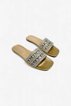 • Material: Durable synthetic upper; strap adorned with high-quality faux pearls and faceted rhinestones.
